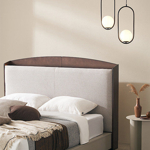 엘린 조명 수납 패브릭 원목침대 K/KK [매트별도]