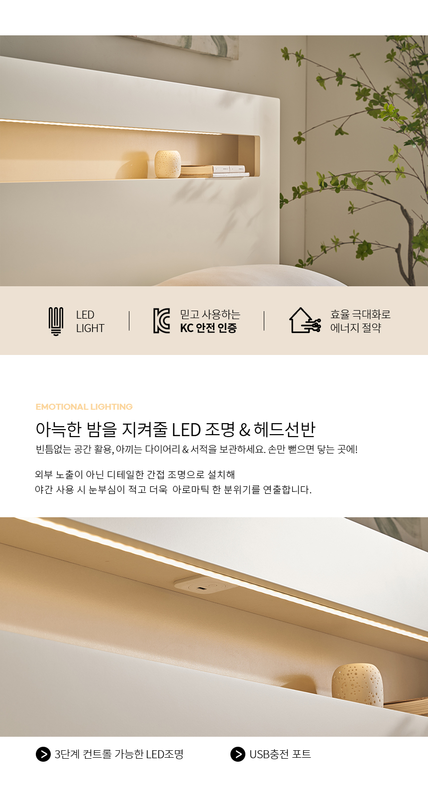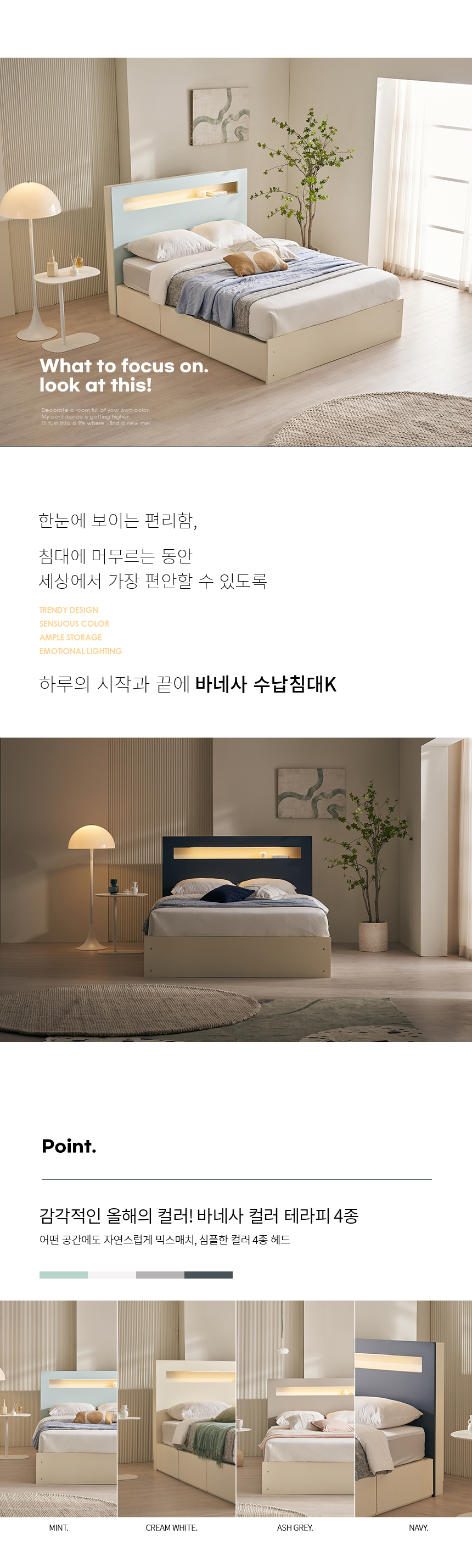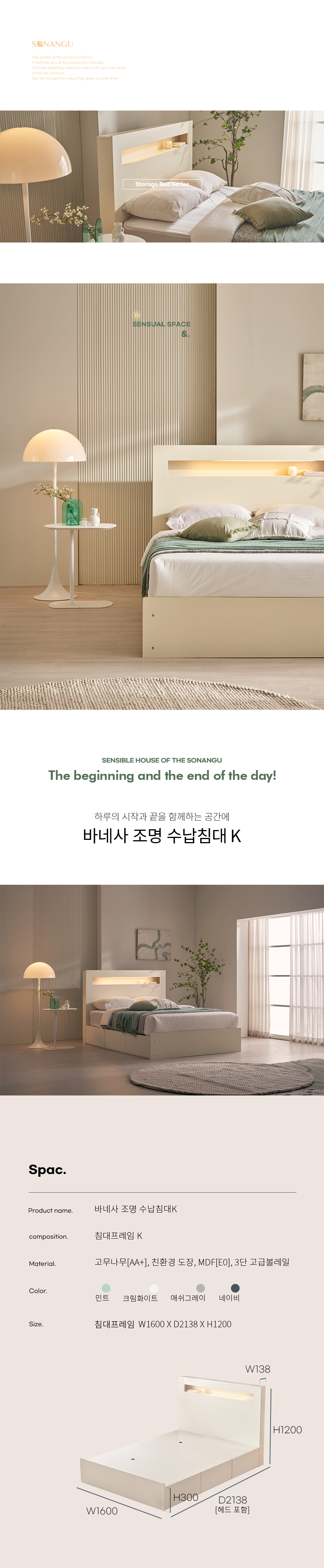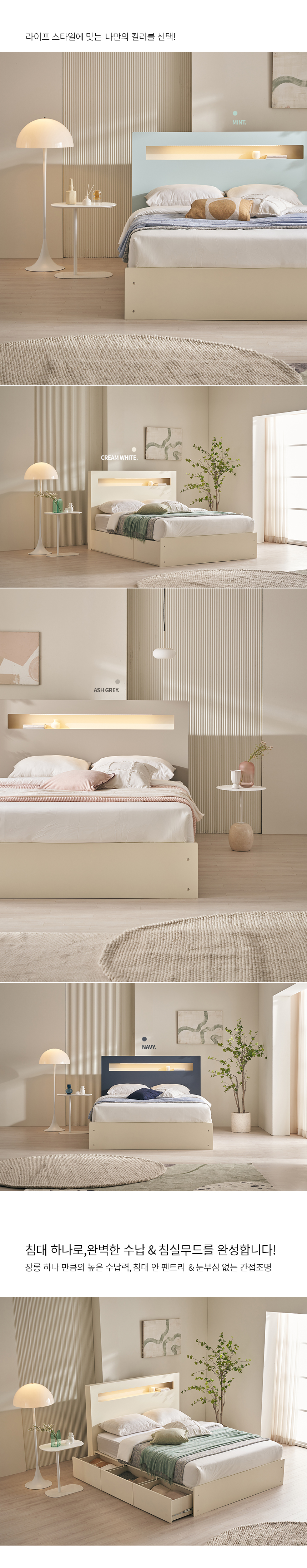 바네사 조명 수납 침대프레임K 컬러4종 [매트리스 미포함]