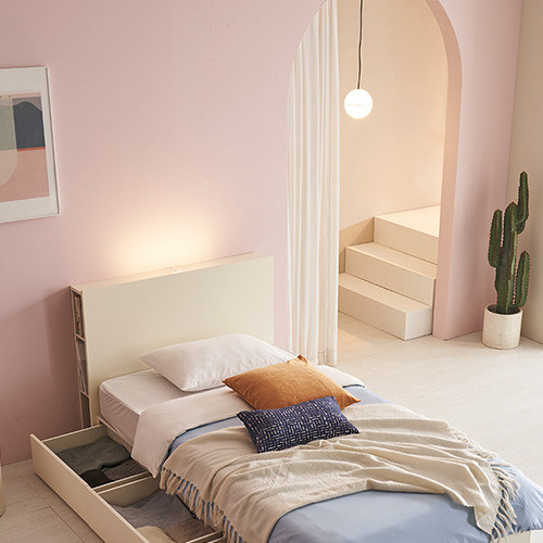 크림 조명 수납 침대프레임 SS 컬러4종 [매트리스 미포함]