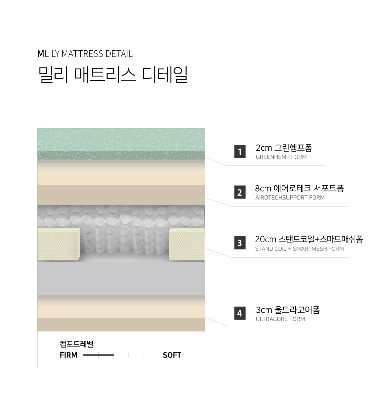 슈퍼싱글 (SS) 1100 x 2000 x 350mm퀸 (Q) 1500 x 2000 x 350mm킹 (K) 1600 x 2000 x 350mm라지킹(LK) 1800 x 2000 x 350mm