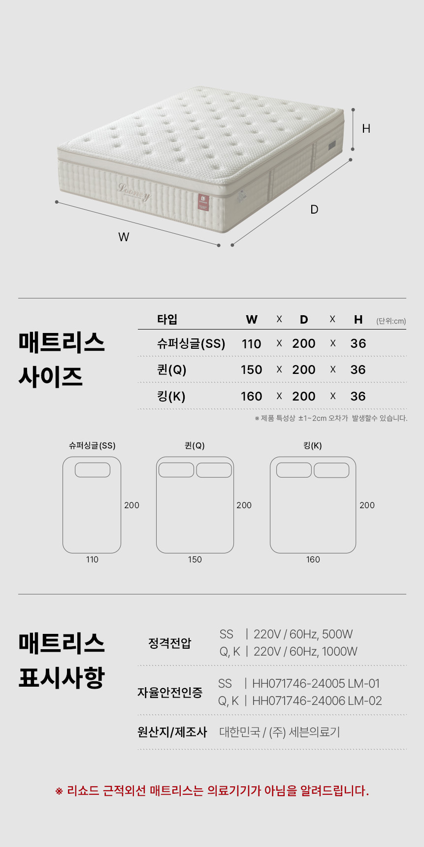 슈퍼싱글 (SS) 1100 x 2000 x 360mm