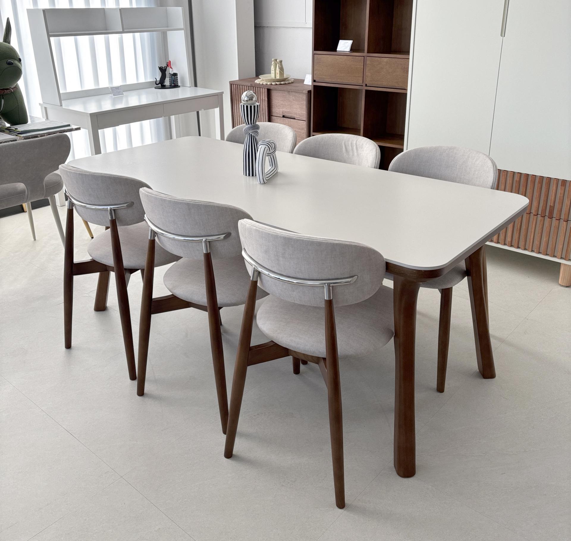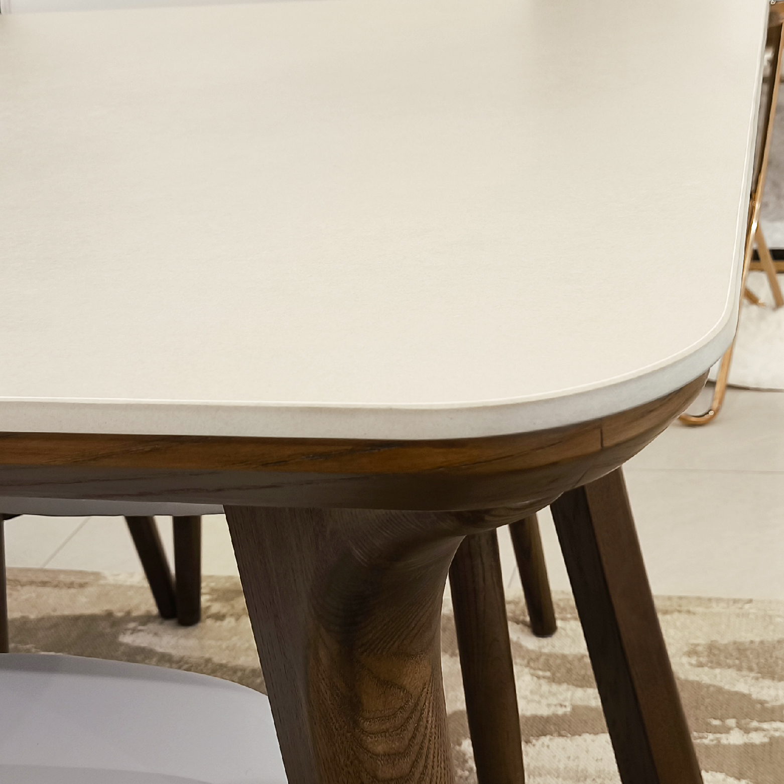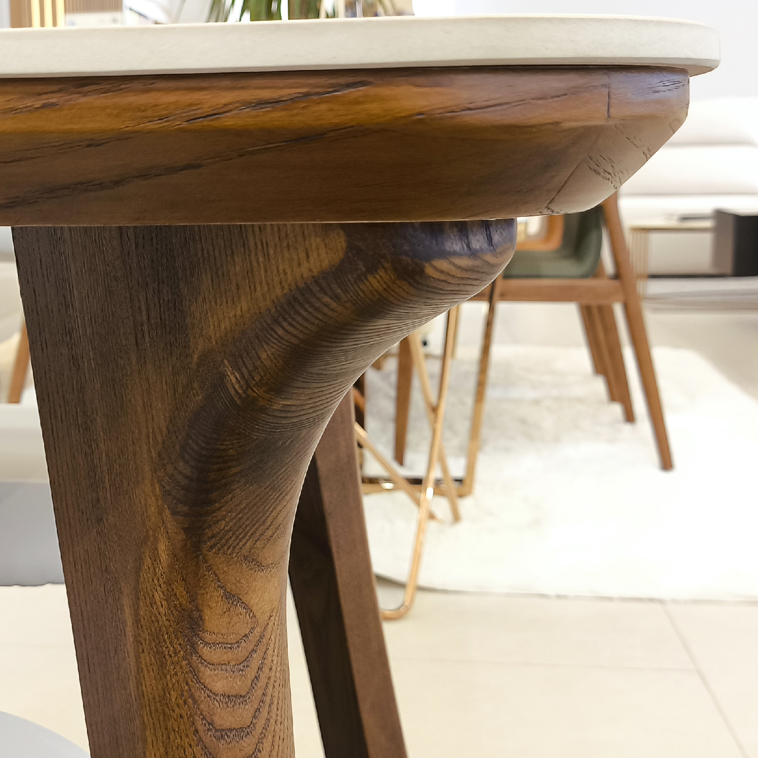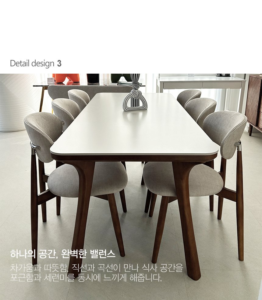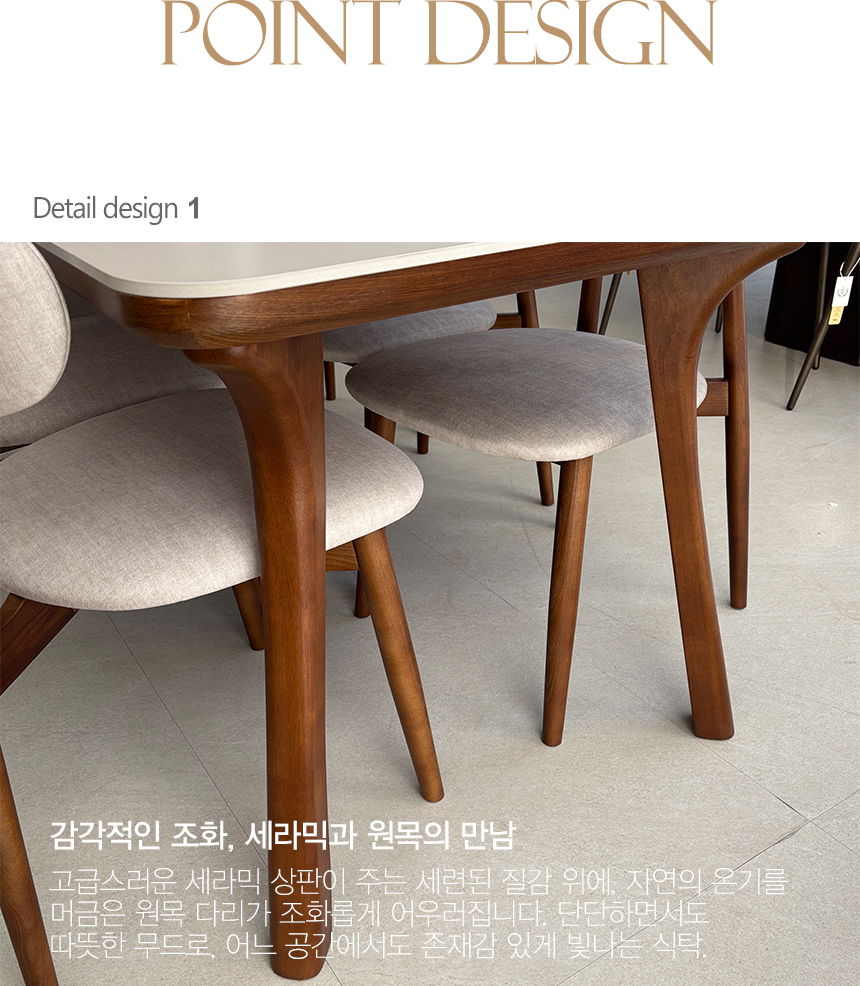 차분한 크림빛 상판과 짙은 우드톤의 대비가