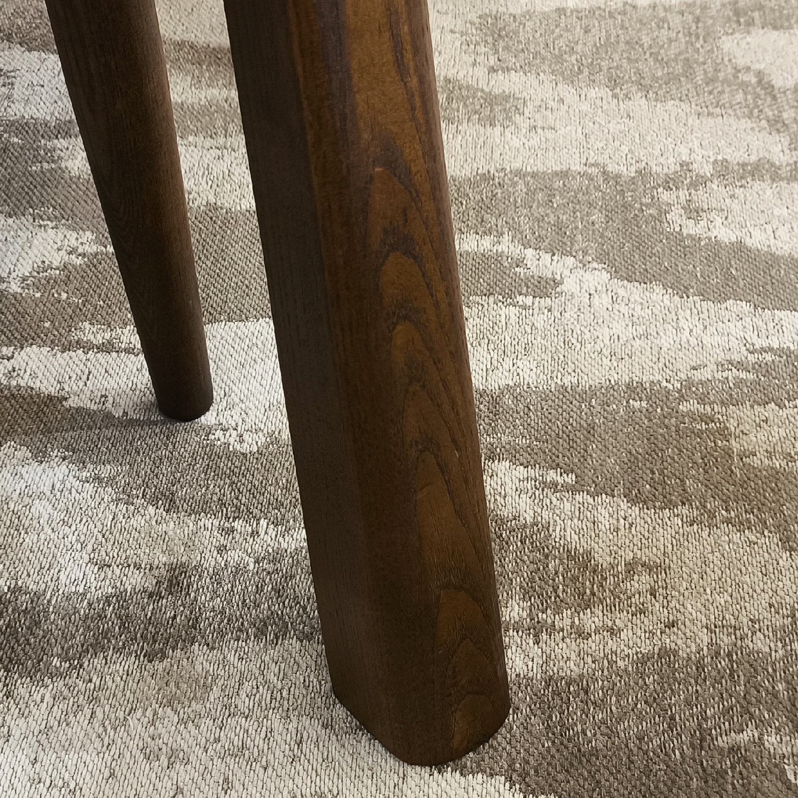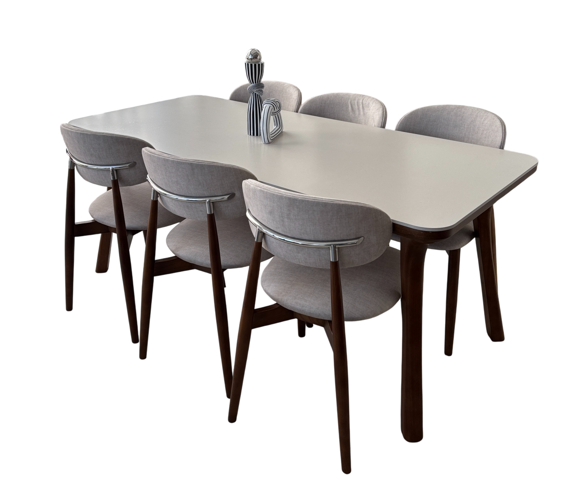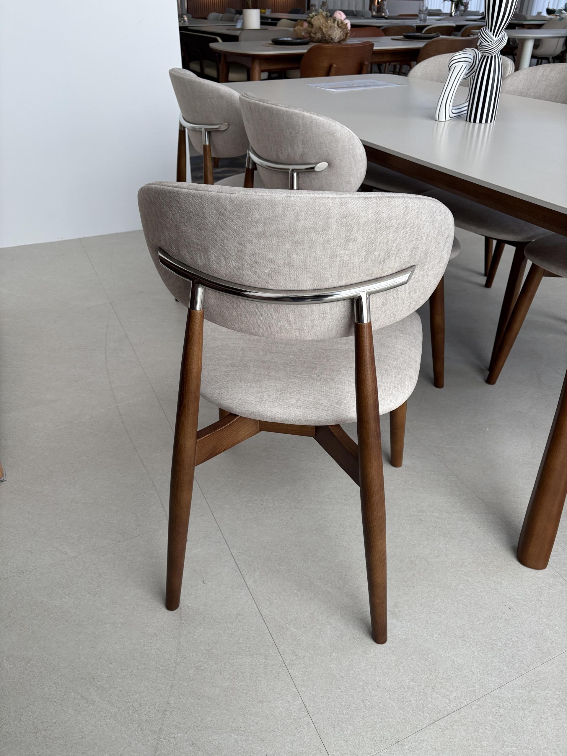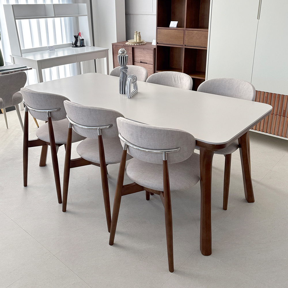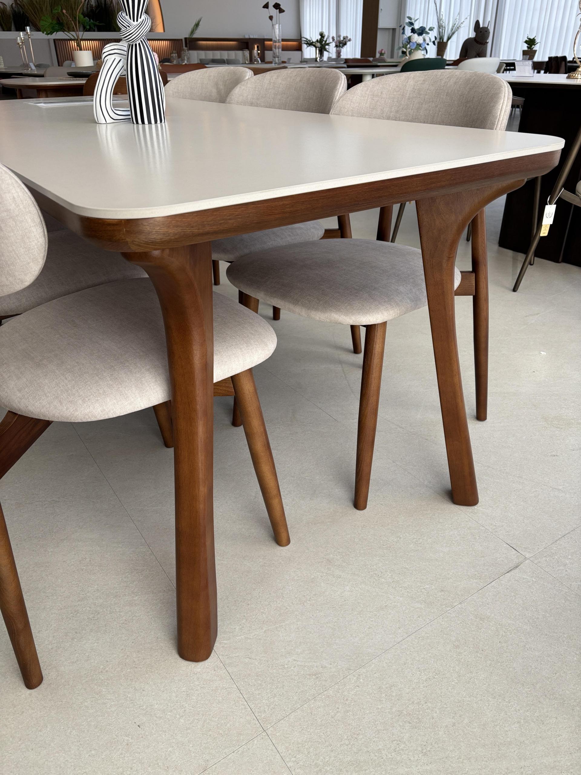 차분한 크림빛 상판과 짙은 우드톤의 대비가
