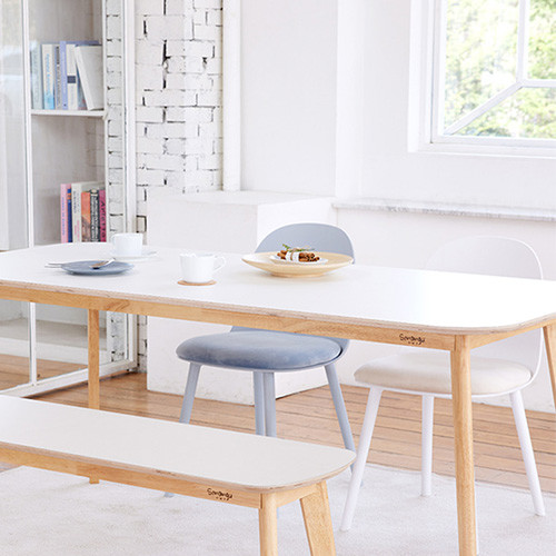 메르시 화이트 HPL 1200~1800 모서리 라운드 식탁 테이블 (의자별도)