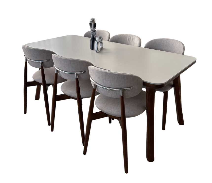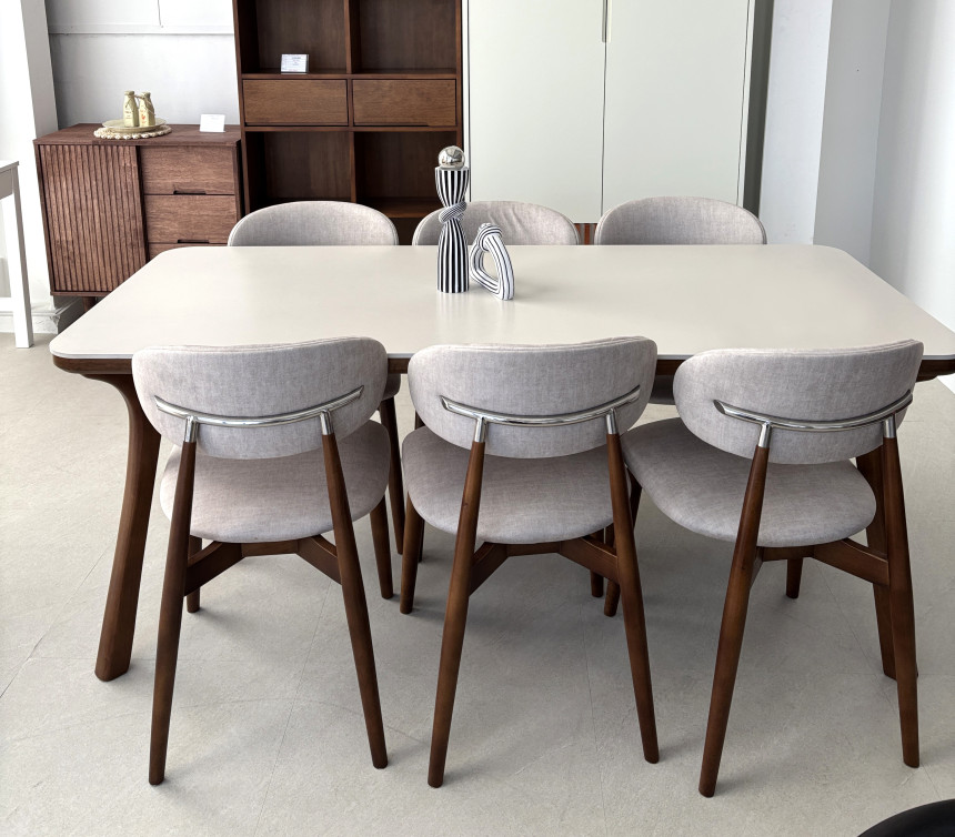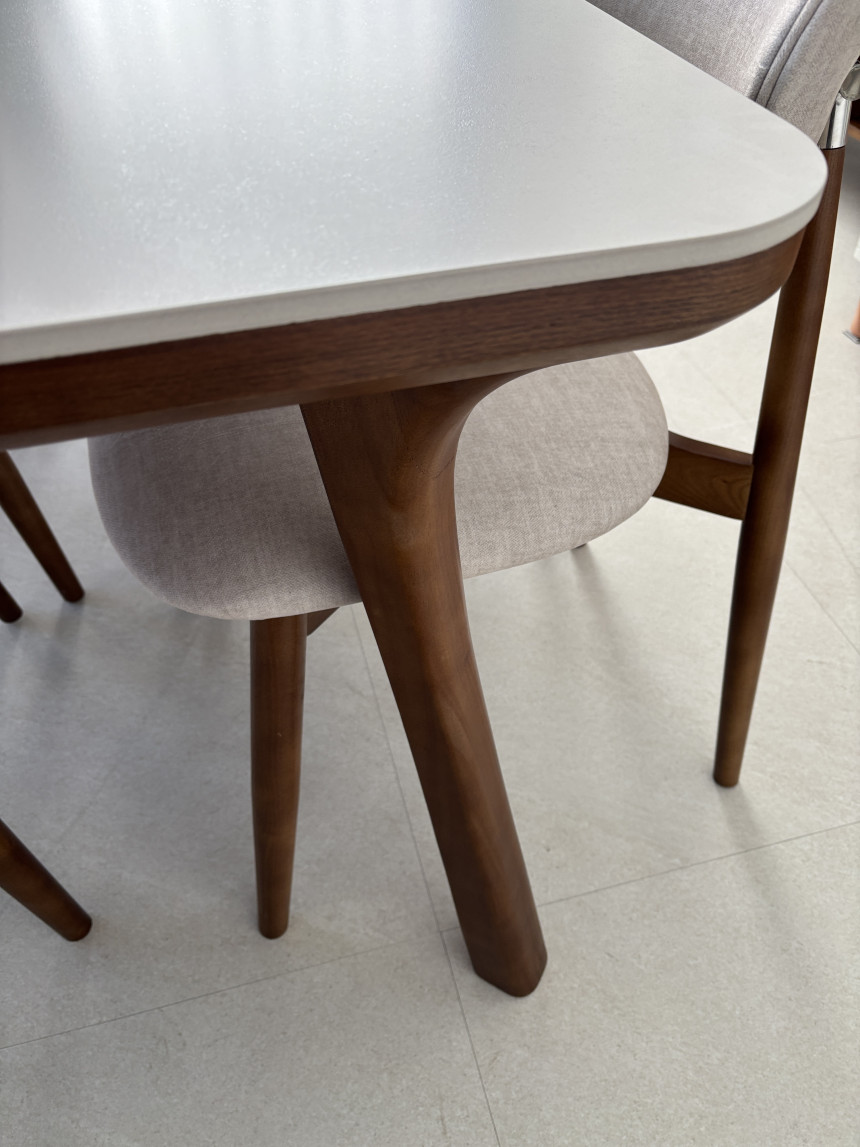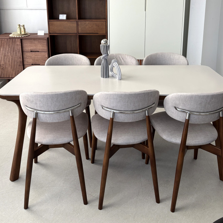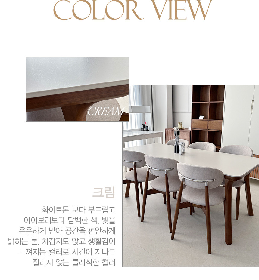 차분한 크림빛 상판과 짙은 우드톤의 대비가