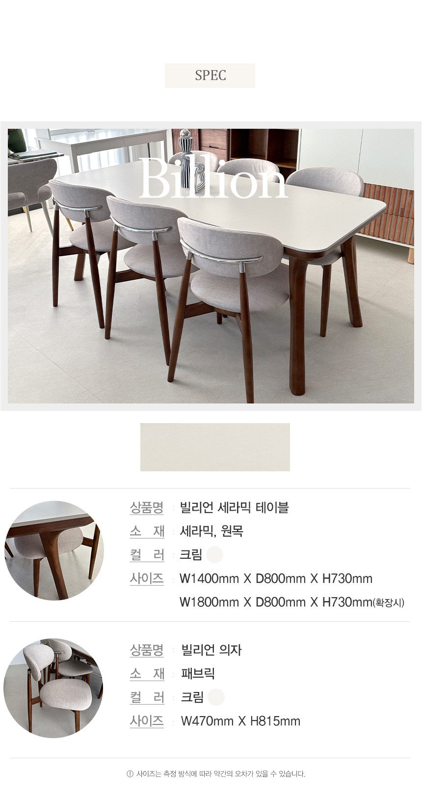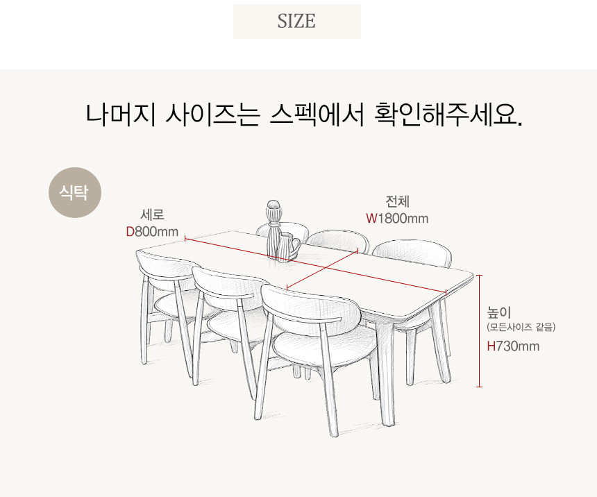 1400은 의자 4개 포함 / 1800은 의자 6개 포함
